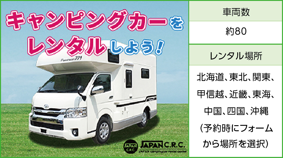 ジャパンキャンピングカーレンタルセンター 旅行関連 評価4.5 『日本最大級のスーツケースレンタル専門サイト』 POINT 北海道から沖縄まで、主要都市各地に拠点を展開 キャンピングカー初心者にもやさしいレンタル専用車をオリジナルで制作 用途に合わせたオプションプランもご […] 続きを読む